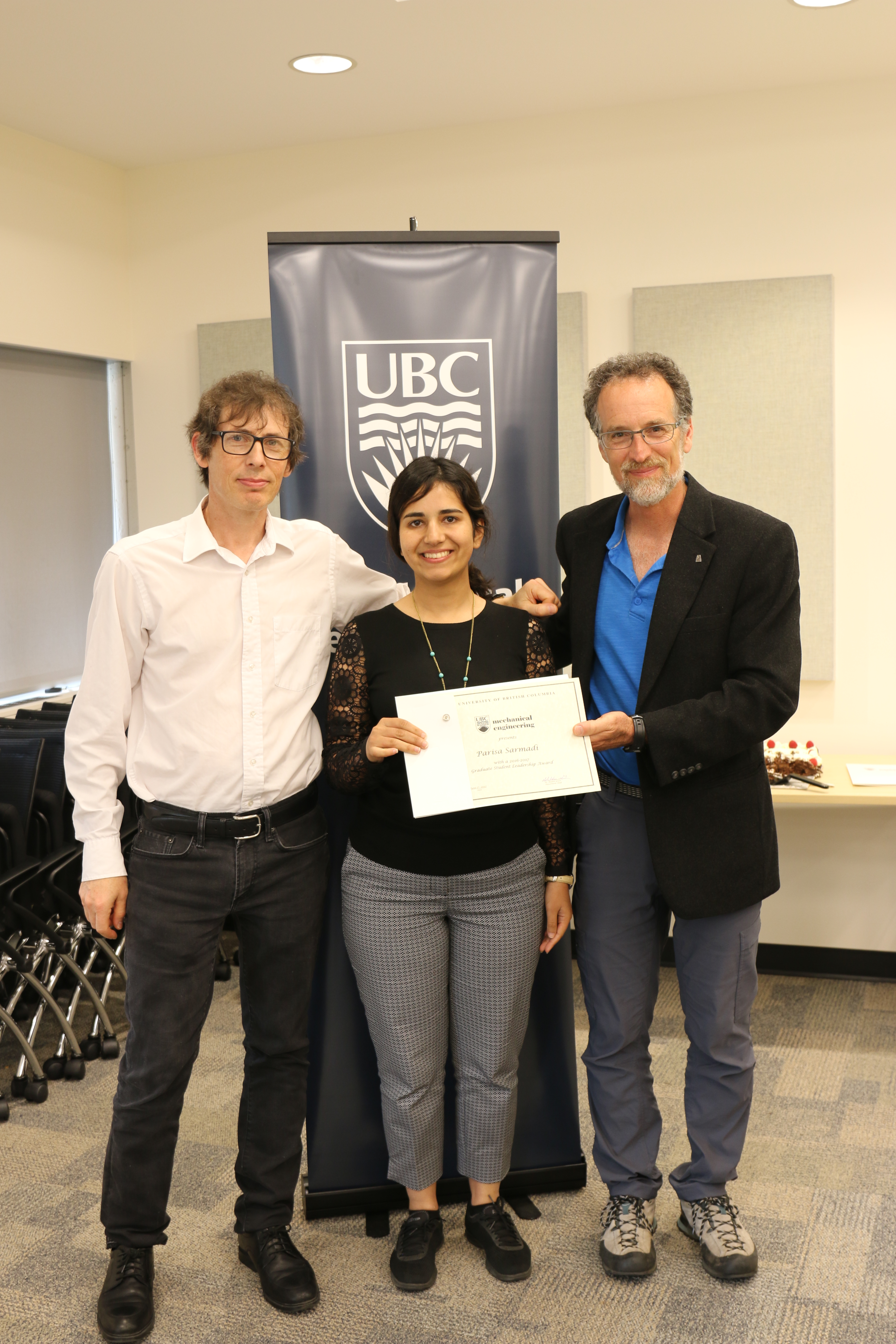 On May 16, 2017, at the annual Applied Science Appreciation Barbeque Department Head Sheldon Green, Assistant Professor Gwynn Elfring, and Mechatronics Technician Benny Nimmervoll received the Dean’s Award for Excellence in Service. Created to recognize the work that faculty members engage in outside of their regular teaching responsibilities, and the exceptional work and dedication staff show to the Faculty. this award is only presented to three faculty and staff members each year. Green, Elfring, and Nimmervoll were also all presented with a $2,000 award and a personalized plaque for recognition of their excellence in service, leadership and administration, and their contributions to the Faculty.